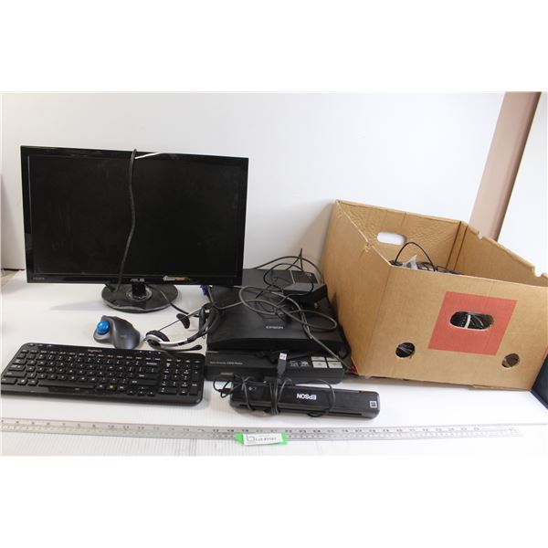 Assorted Technology Pieces - Keyboard, Cords, Display, etc.