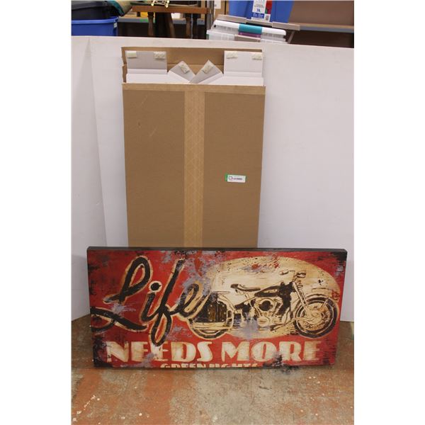 * Decorative Wooden Motorcycle Sign with Cardboard Display Rack - 40" x 20"