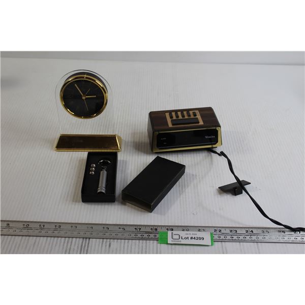 (2) Clocks - Both Work, Keychain Flashlight - Untested