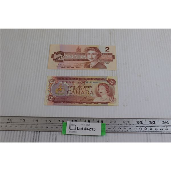 (2) Canadian Two Dollar Bills - 1974, 1986