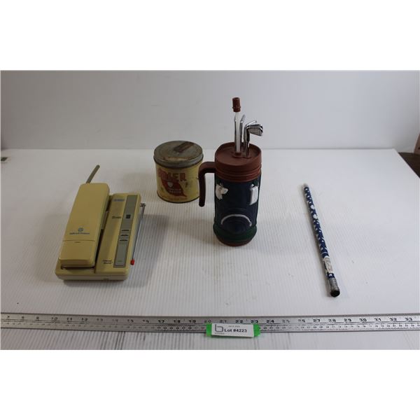 Phone, Brier Tobacco Tin, Golf Bag Cup with Straw, Large Pencil