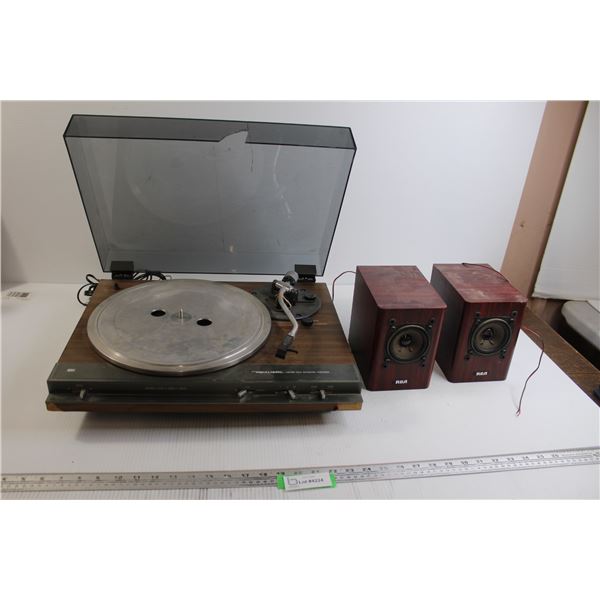 Realistic Record Player - Cracks on Plastic Cover, Untested; (2) RCA Speakers