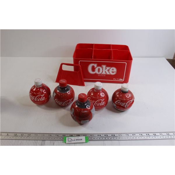 (5) Holiday 2010 Full and Empty Coca-Cola Bottles, Coca-Cola 6 x 1L Plastic Carrier - Broken Handle