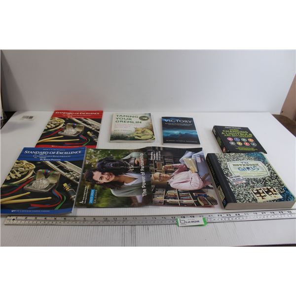 (2) Music Books - E Flat Alto Saxophone, (2) Calendars, (4) Books
