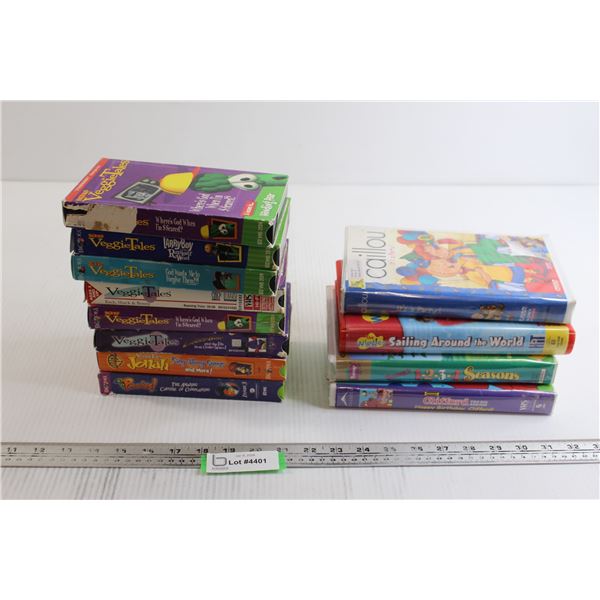 (12) VHS Tapes - Veggie Tales, Caillou, Barney, Clifford