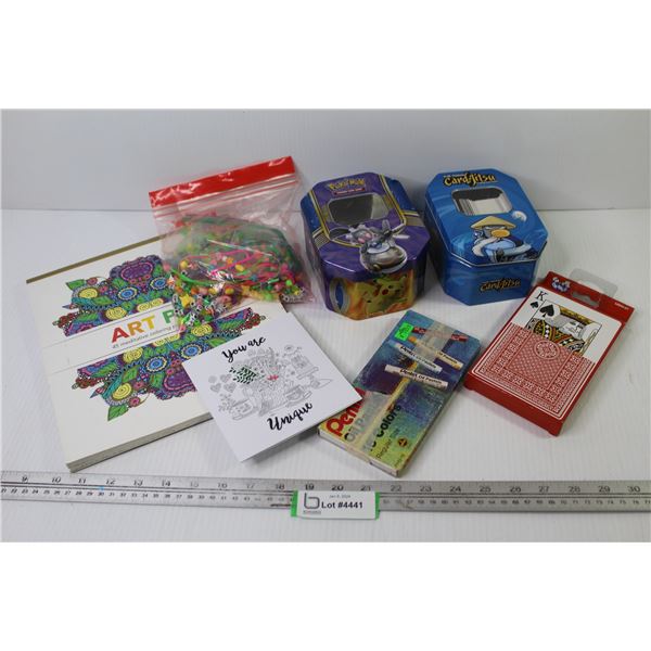 Art Pad - Giant Cards - Card-Jitsu - Pok'emon Tin - Plastic Beads - Pentel Oil Pastels