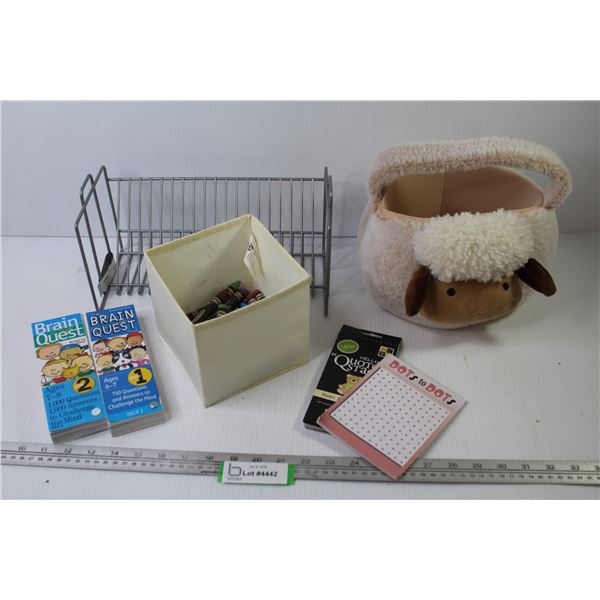 (2) Brain Test Booklets - Lamb Basket - CD Holder - Crayons