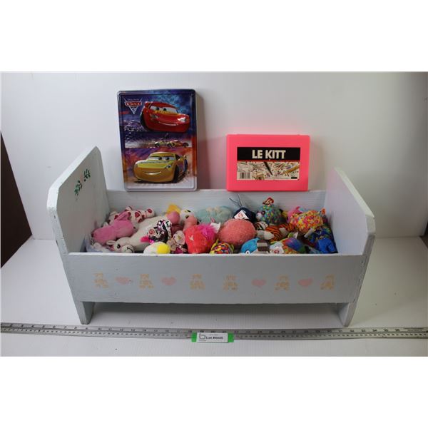 Doll Crib - Cars Tin - Plastic Le Kit Case - Assorted Small Stuffed Toys