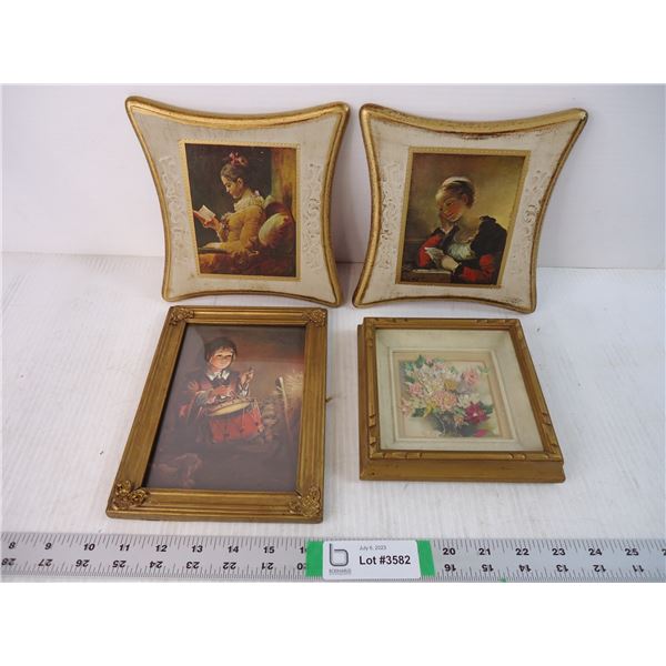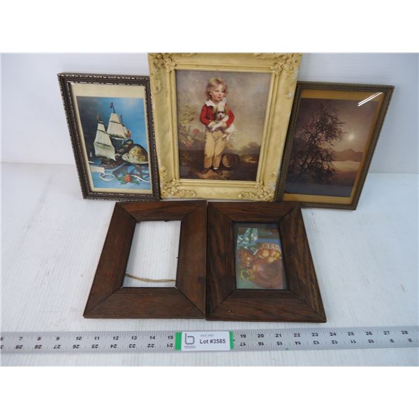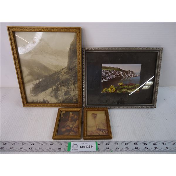 (4) Vintage Pictures and (1) Frame- (1) 8.5x11,(4) are 6x9