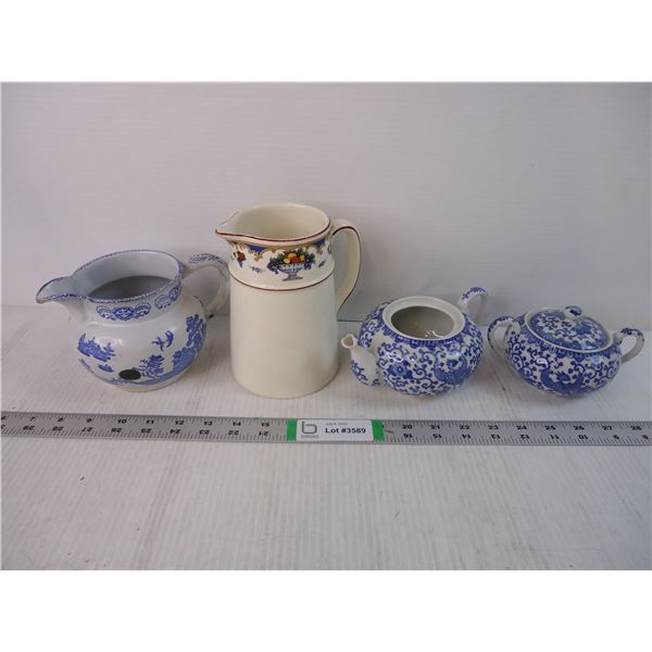 (2) Made in Japan Teapots, Made in England Pitcher and Blue Jug/Creamer