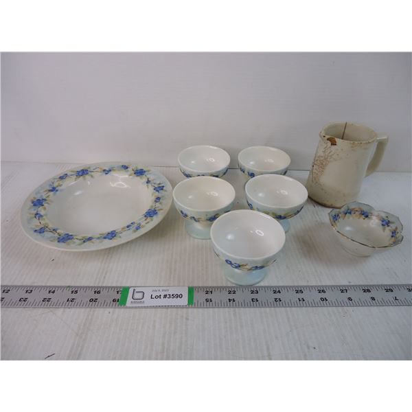 (6) Pieces of Kopin, Trinket Dish and Small Pitcher (cracked)
