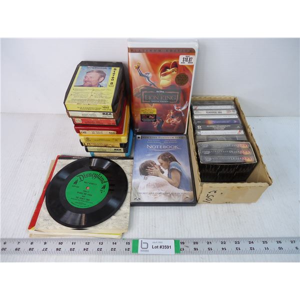 Lion King Movie on VHS (sealed), (8) 8-Tracks, Cassettes, (6) 45's records and DVD