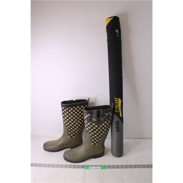 Cool Stream Can Cooler and Women's Rubber Boot Size 7