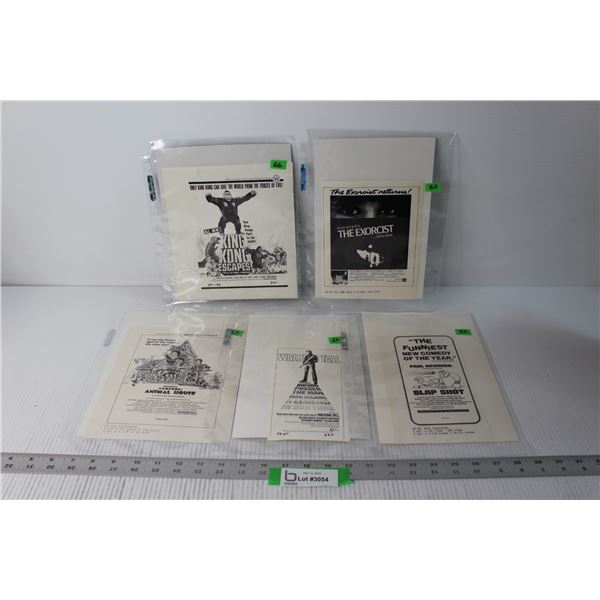 (5) Movie Synopsis Sheets - King Kong Escapes, The Exorcist, Animal House\