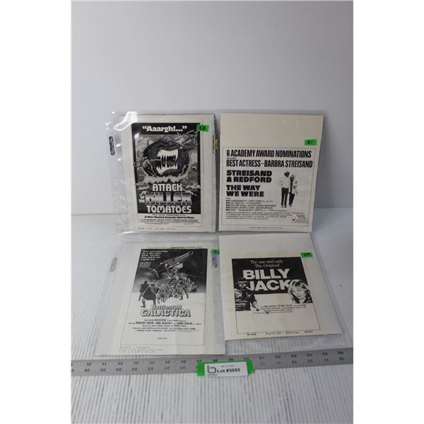 (4) Movie Synopsis Sheets - The Way We Were, Billy Jack, Battlestar Galactica