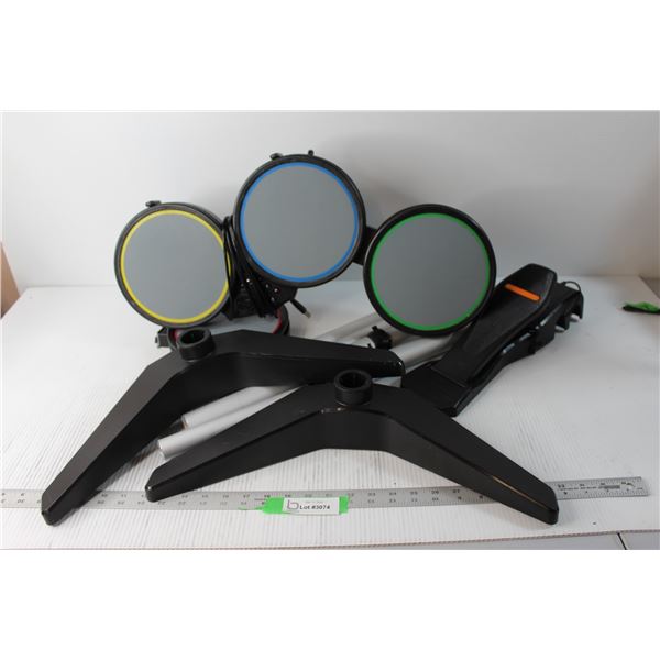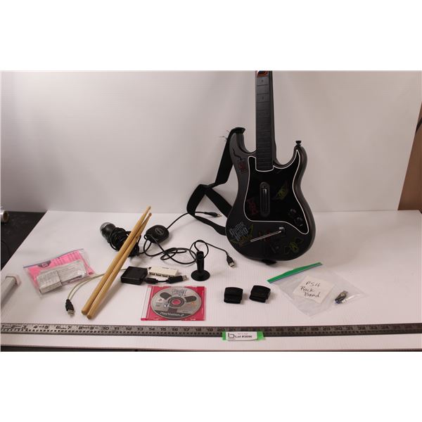 (2) Sony PlayStation Guitar Hero Guitars PlayStation Rock Band Accessories - Drum Sticks, Microphone, Headset, Guitar Hero II etc.