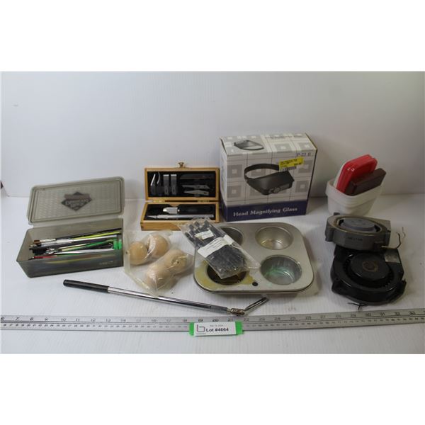 Wooden Carving Set, Magnifying Glass, Paintbrushes, Mechanical Pencils, Fans, etc.4664 - Wooden Carving Set, Magnifying Glass, Paintbrushes, Mechanical Pencils, Fans, etc.