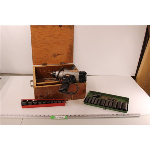 Vintage Craftsman 1/2" Driver Electric Impact Wrench (Trigger Adjusta-Torque Control) - working & Impact Sockets - Standard & Deep (Imp...