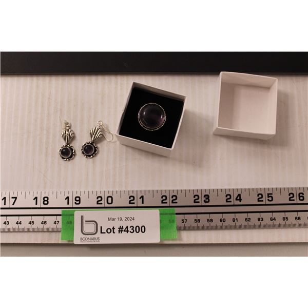 Sterling Silver Amethyst Ring (Size 10) & Pendant Earrings