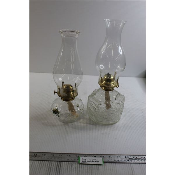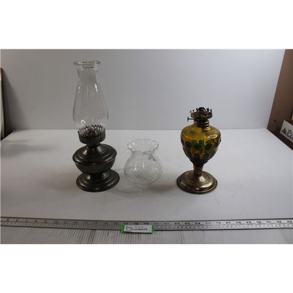 (2) Kerosene Lamps - (1) Shade Doesn't Fit Lamp