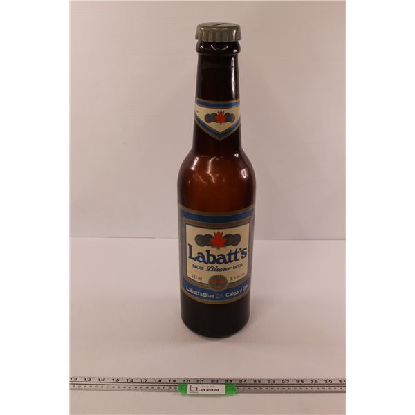 Vintage Labatt's Blue Plastic Bottle Coin Bank - Empty (Cap Cracked)