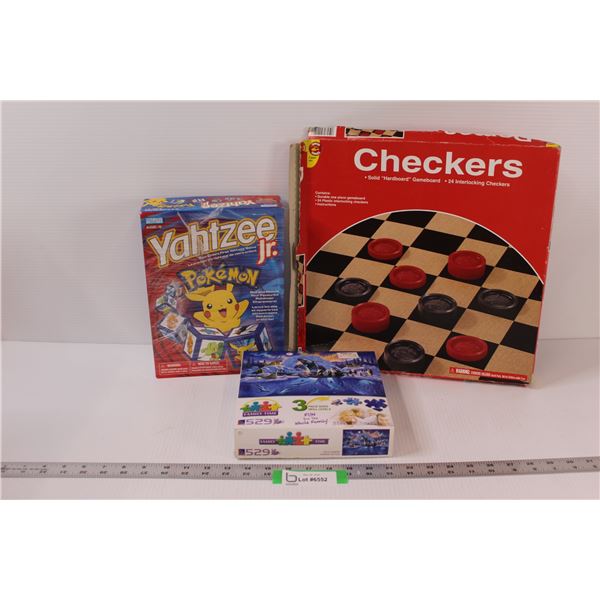 Pokemon Yahtzee Jr. Game, Checkers Game, Family Nature Puzzle - As Is