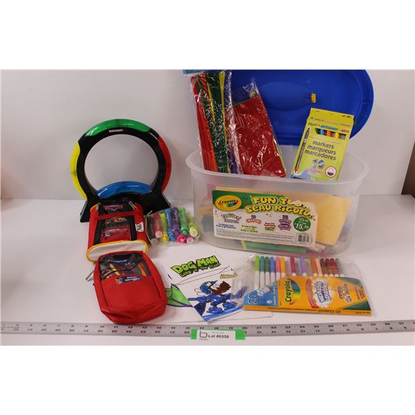Lot of Art Supplies in Container & Simon Air Game - As Is6558 - Lot of Art Supplies in Container & Simon Air Game - As Is