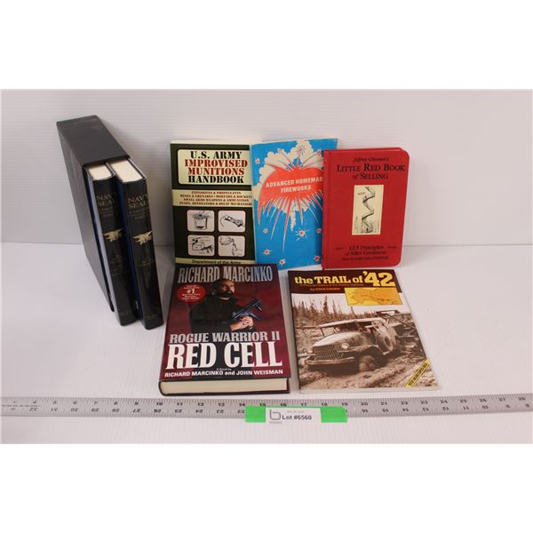 Book Lot: Navy Seals, U.S. Army Munitions Handbook, Red Cell, Alaska Highway History, Little Red Book of Selling, Misc.