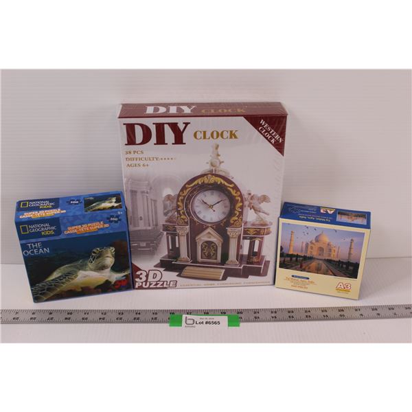 (2) Puzzles: Turtle & Taj Mahal, DIY Clock - Sealed