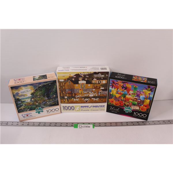(3) Puzzles: Cows Come Home, Happy Hour, Moonlight & Roses - As Is