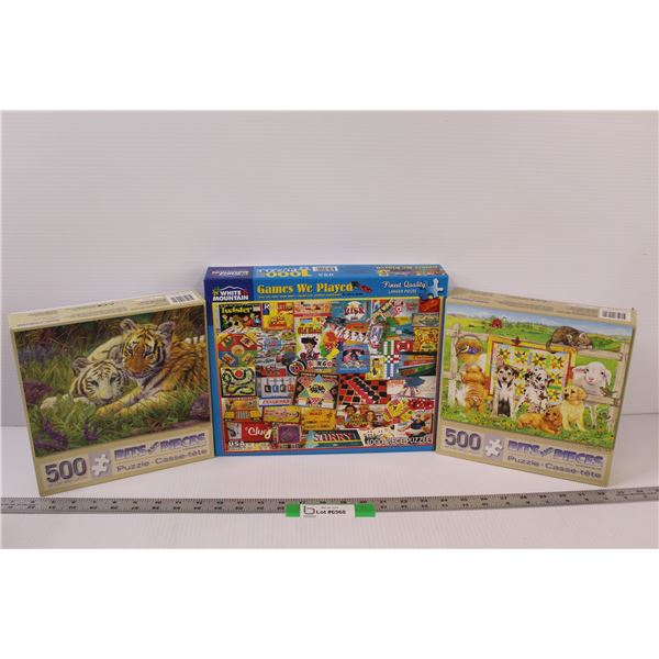 (3) Puzzles: Vintage Games, Quilting Animal Club, Tigers