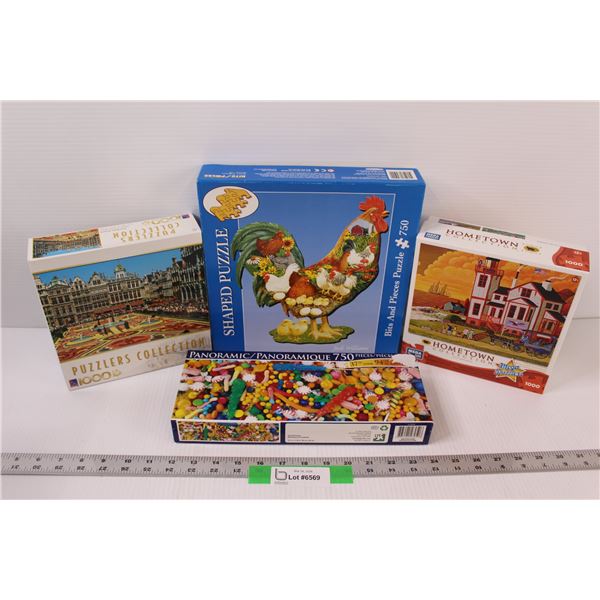 (4) Puzzles: Candy, Rooster, Coastal Town, Plaza Brussels6569 - (4) Puzzles: Candy, Rooster, Coastal Town, Plaza Brussels
