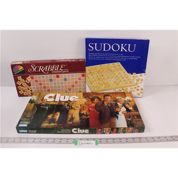 (3) Board Games: Scrabble, Clue, Sudoku6571 - (3) Board Games: Scrabble, Clue, Sudoku