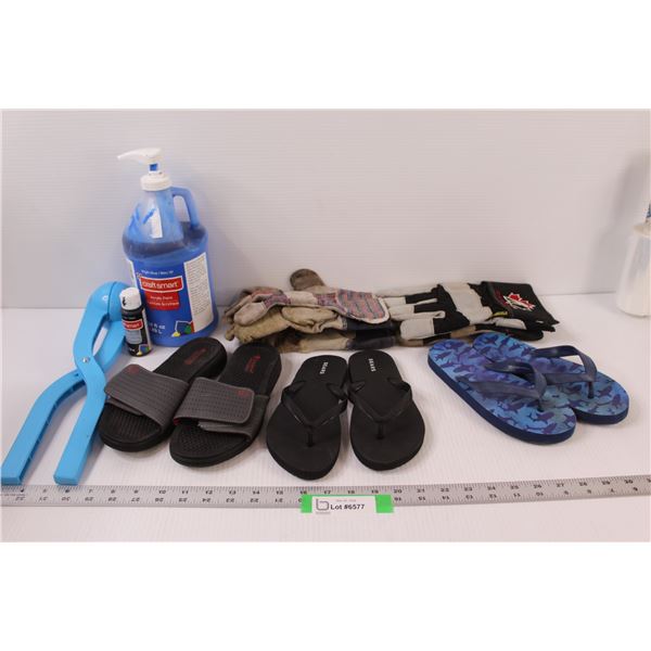 (3) Children's Sandals Size 2/3, Acrylic Paint, (2) Work Gloves, Snowball Maker6577 - (3) Children's Sandals Size 2/3, Acrylic Paint, (2) Work Gloves, Snowball Maker