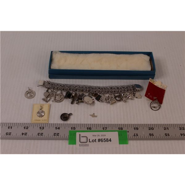 Charm Bracelet - 7.5" - Various Charms as Well6584 - Charm Bracelet - 7.5" - Various Charms as Well