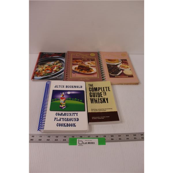 (5) Cookbooks: Slowcooker, Main Courses, Appetizers, Alvin Buckwold, Whiskey Guide6593 - (5) Cookbooks: Slowcooker, Main Courses, Appetizers, Alvin Buckwold, Whiskey Guide