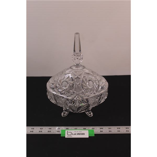 Vintage Cut Glass Candy Dish - 7.5"x5"x10"