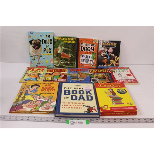6609 - (12) Books: Snow White, Dad Book, Curious George, Flat Stanley, Pokemon, Misc.Bodnarus Auctioneering & Real Estate