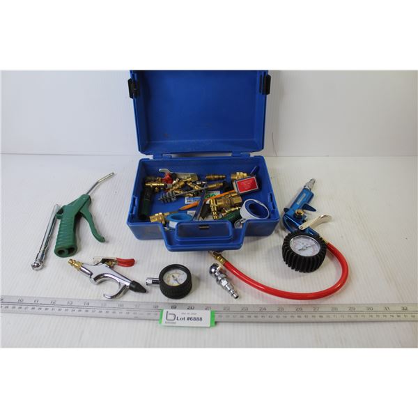 Air Compressor Tire Gauges & Brass Connectors in Case