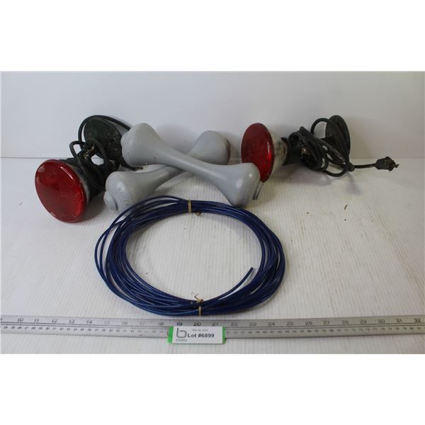 (2) Weilder Hand Weights - (2) Red Flood Lights (working) - Partial Clothes Line