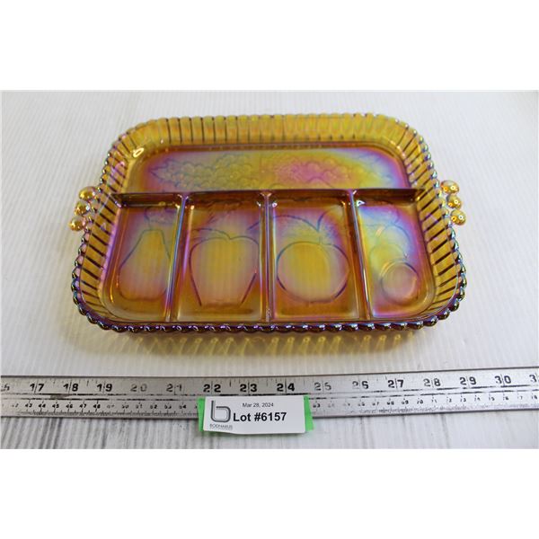 Marigold Carnival Glass Divided Tray Platter - Fruit Pattern