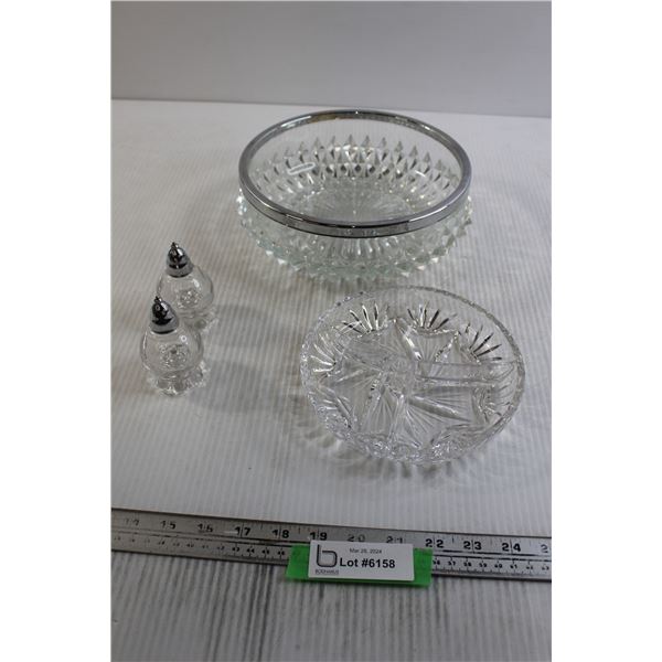 Salt and Pepper Shakers, Large Bowl, Crystal Divided Dish
