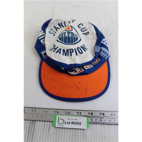 Vintage 1980s NHL Edmonton Oilers Painters/Pillbox Hat Signed by (3) Players - Not Authenticated
