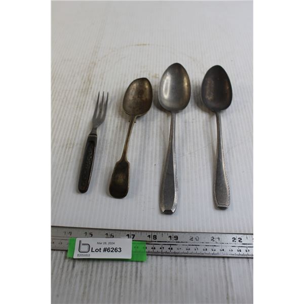 (2) Pre-1900s Cutlery Pieces, (2) Large Spoons - WWII Era