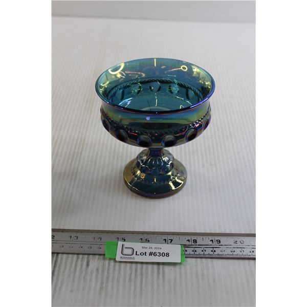 Vintage Romanian Green Glass Candy Dish - 9 1/2" Tall, Consignor Says No Chips or Cracks
