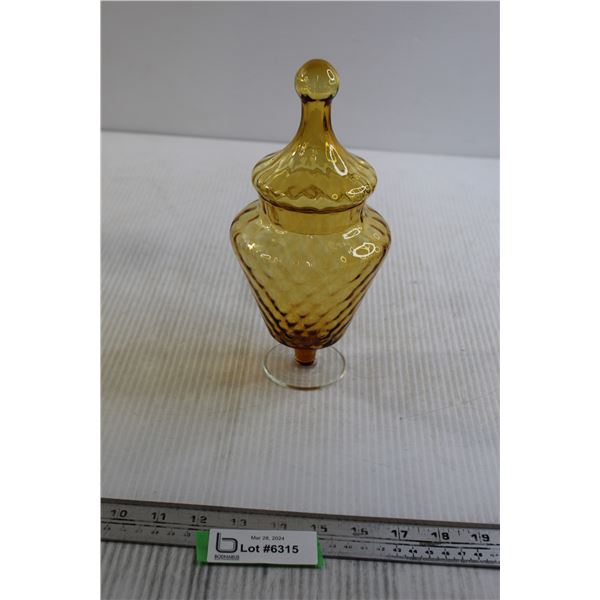 1960s Empoli Italy Amber Glass Candy Dish - 10" Tall, Consignor Says No Chips or Cracks
