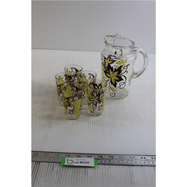 Mid-Century Modern - MCM - Pitcher and Matching (5) Glasses