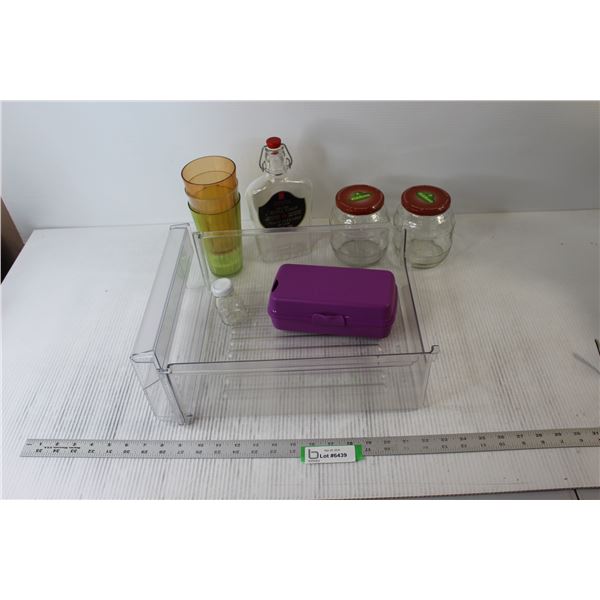 Refrigerator Crisper Drawer, Tumblers, Glass Jars, Tupperware Container, etc.