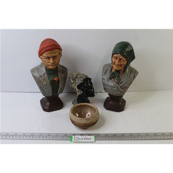 (2) Ceramic Statues - Black Coral Head - Pottery Bowl