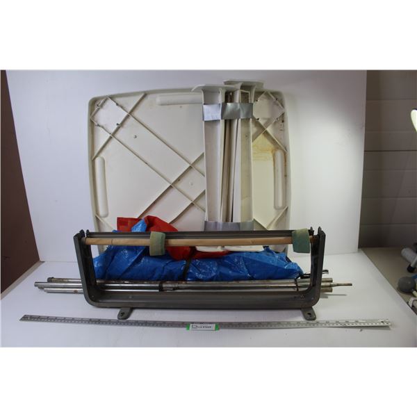 Tarp w/Poles - Paper Roller Cutter - Plastic Table w/Legs